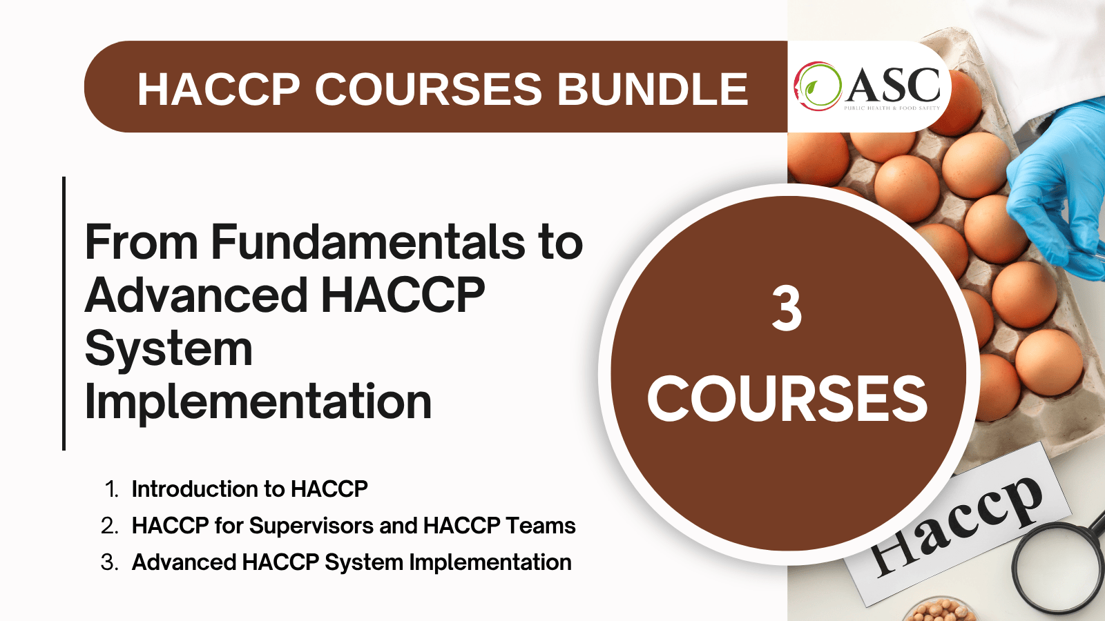 By combining three self-paced online courses (Introduction to HACCP, HACCP for Supervisors and HACCP Teams, and Advanced HACCP System Implementation), this bundle equips professionals at every level with the knowledge, confidence, and practical skills to design, manage, and continuously improve HACCP systems.